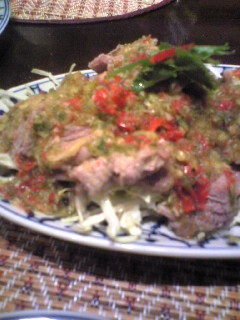 冷牛に青トウガラシがたっぷりという料理らしい。