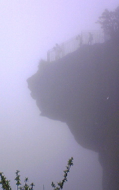 上からみると霧のお陰で下が見えない。さらに恐怖心をあおる。