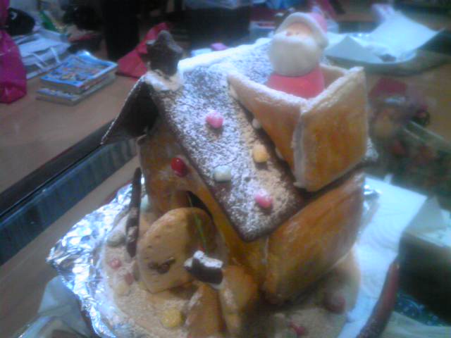 手作りクッキーハウスも危ういながら完成。