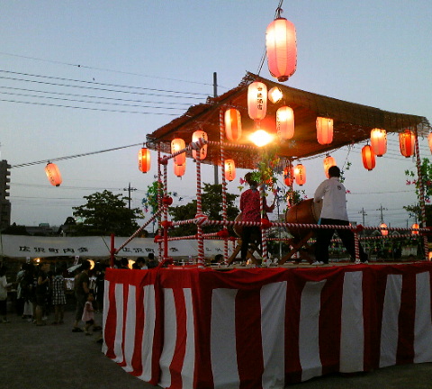 土曜のやぐらの上にあった和太鼓。広沢町内会の和太鼓だけど(多分1.6尺)とても良い音だった。